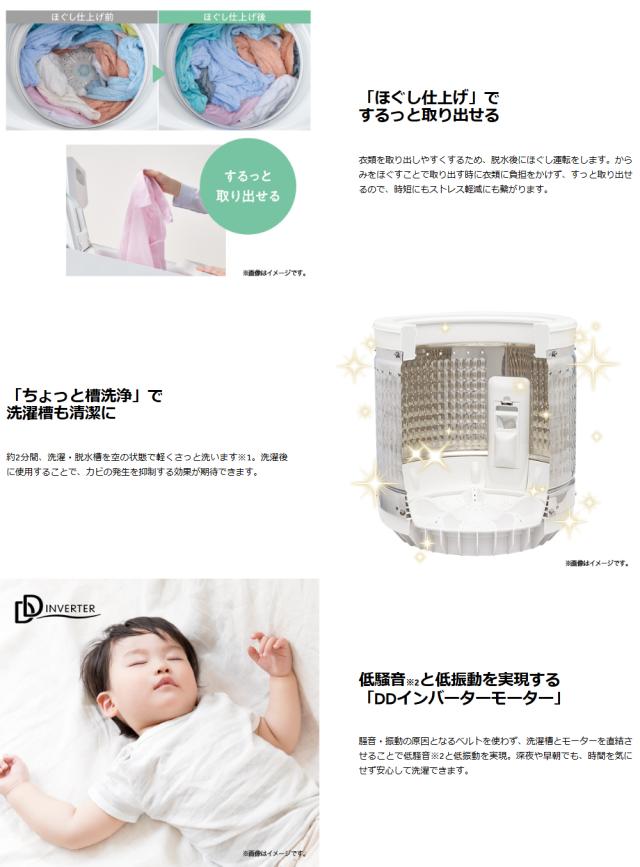 ※2 運転音:洗い時38dB、脱水時39dB。運転音の表示は一般社団法人日本電機工業会洗濯機性能評価基準による。深夜のお洗濯は近隣へのご配慮をお願いします。